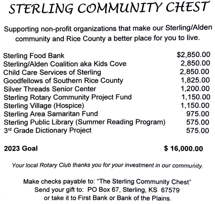 The dinner is provided by several organizations in Sterling, including the Boy and Girl Scouts, Rotary Club, Silver Threads, Presbyterian Manor, Sterling College cafeteria staff and area churches.